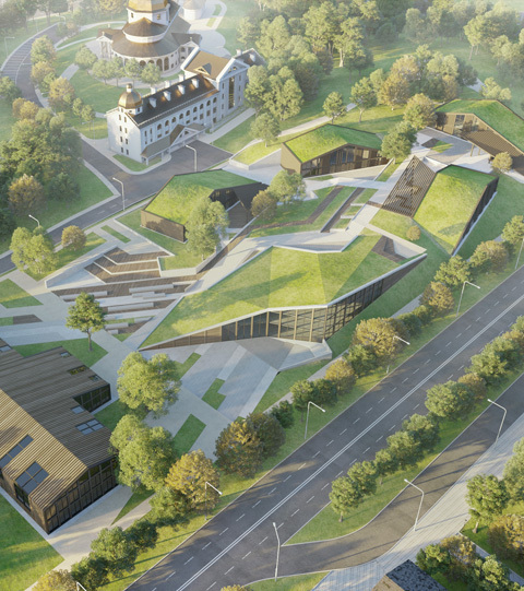 Регенерация исторической застройки по ул. Чижевских в жилом районе “Лошица” г. Минска, визуализация застройки с предложением по объемно-пространственному решению комплекса.